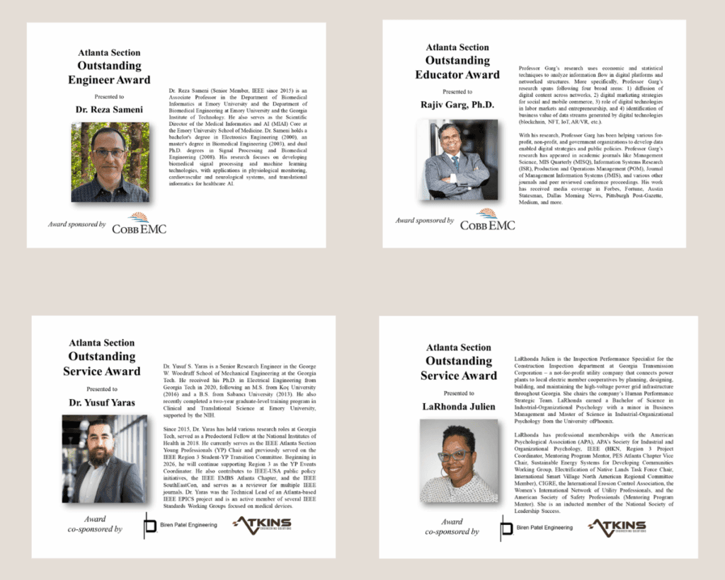 Nine sponsors funded the conference including Diamond Sponsor, Georgia Transmission Corporation, Gold Sponsors GTRI, Burns & McDonnell, and IEEE’s Computer Society, Silver Sponsors DigiKey, IEEE’s Power and Energy Society, NRO, and IEEE-USA, and Bronze Sponsor Florida Atlantic University.